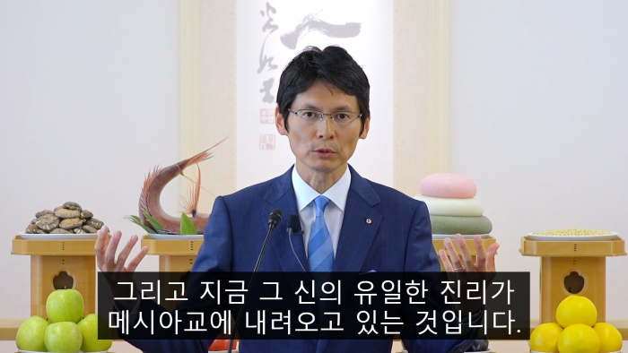 「세계메시아교 추계대제」마사아끼사마 성언2023년 10월 1일 「완전자유의 메시아교」 여러분 안녕하십니까. 이 연설대는 지난 달 본부 월례제부터 사용하기 시작했는데, 오늘은 아타미에서 가져왔습니다.(일동 웃음) 지난번 월례제에서도 잠깐 이야기