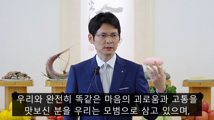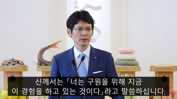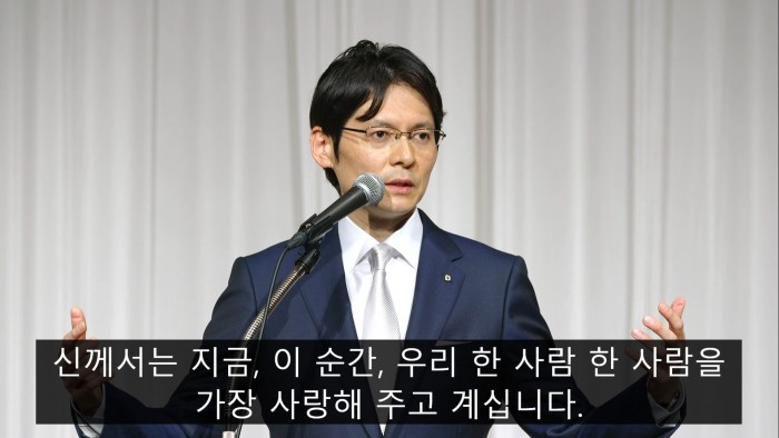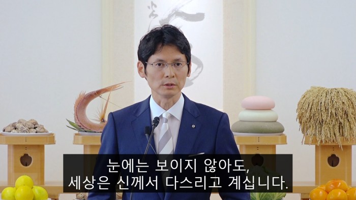 11월 월례제 마사아끼사마 성언2022년 11월 1일 「때는 지금」 여러분 안녕하십니까. 참배석에서 계속 마스크를 쓰고 있다가 연단에 나오면「어? 뭔가 잊은게 있나?」라고 항상 저는 생각하게 됩니다. 하지만「아, 괜찮구나. 여기서는 마스크 안 써도